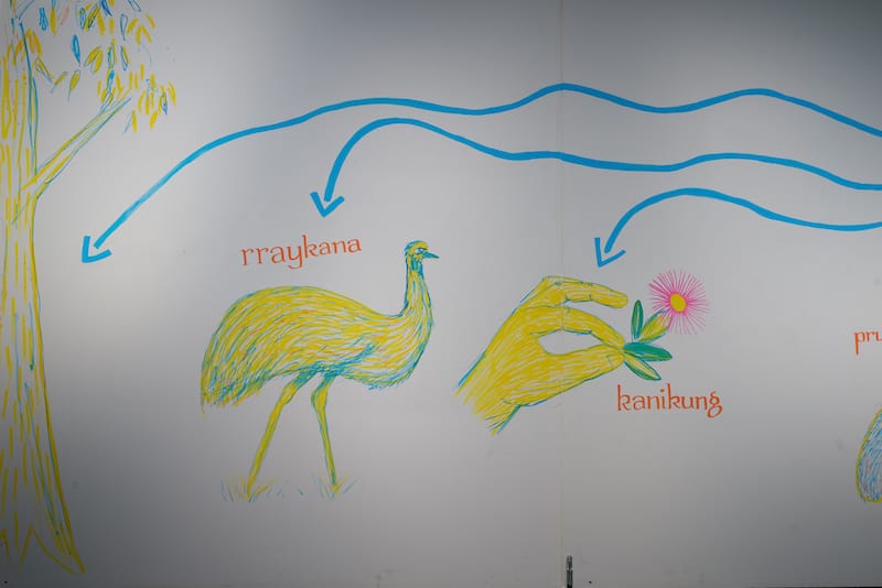 This exhibition itself arrives from extensive work by the Palawa community and language program. It revives and revitalises culture and it’s quite amazing: there is so much work and research here. Palawa Kani is a whole language, used within community. In a spirit of astonishing generosity, some words are essentially offered to the broader population so they might be used. I found this quite humbling, and interesting, and it made me think of how crucial it is to identity and culture for language to exist. It also made me realise this exhibition wasn’t really aimed at me[4], that it’s actually for Palawa people in Lutruwita, but that it’s alright for me to use these words as well.